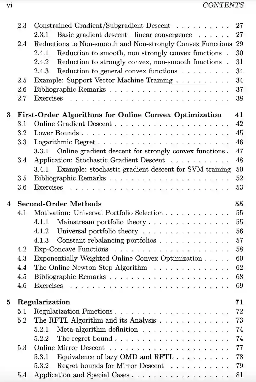 第 1、2 章介绍了在线凸优化的基础知识和基本概念;