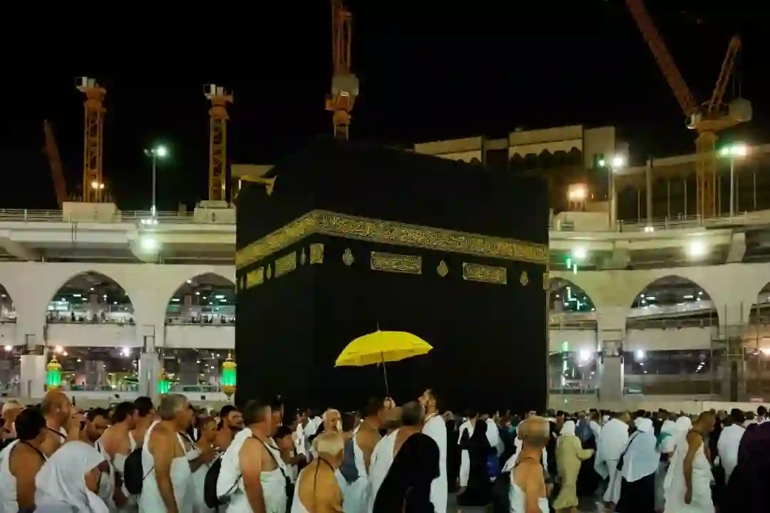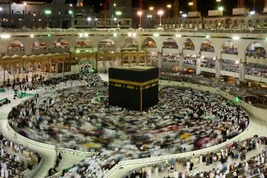 即使是在深夜,麦加禁寺中围绕克尔白天房朝拜和环行的穆斯林信众依然会达到数千人之多。