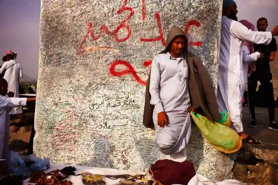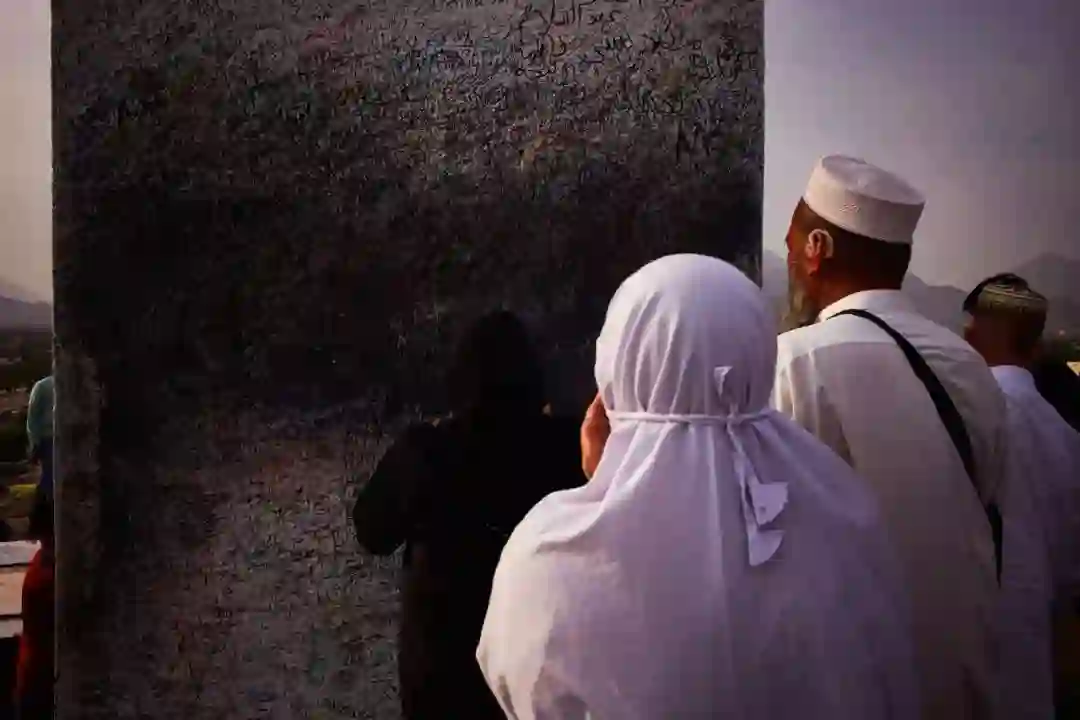 阿拉法特山圣石之上留下的密密麻麻的信众签名。在最近几十年航空业和公路交通取得巨大发展之前,麦加朝觐对大部分穆斯林来说乃是高不可攀的奢望。