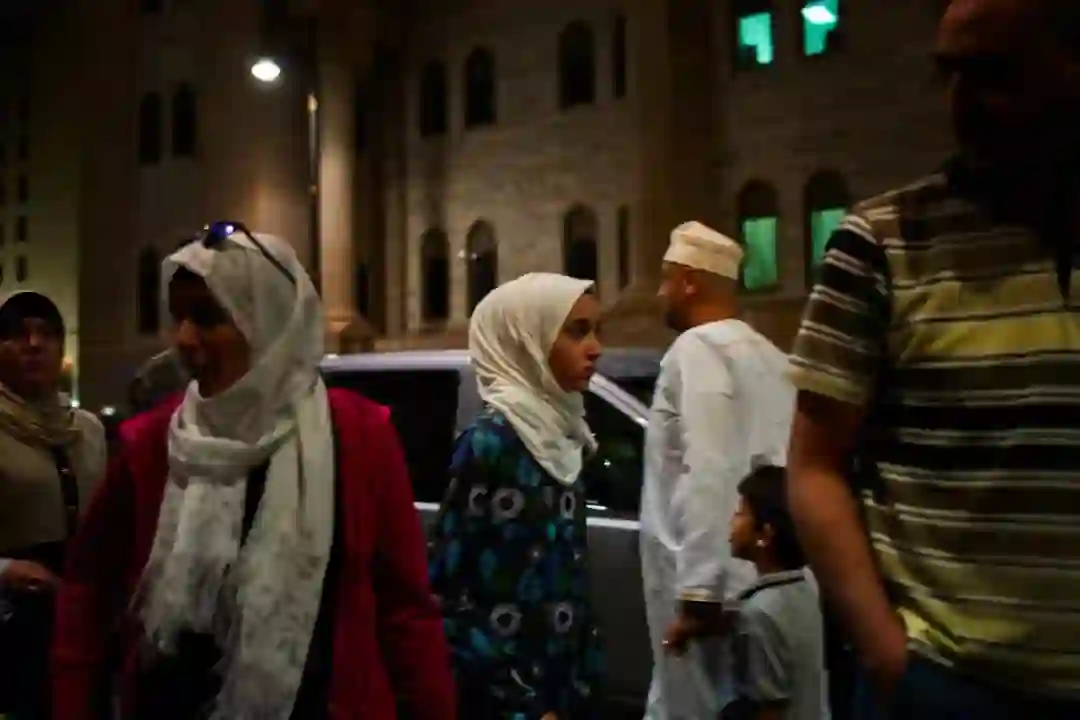 在达曼的一处开放式公园,头戴“尼卡布”面纱、结伴出游的妇女们围坐在棕榈树下。迄今为止,大多数本地妇女在室外环境里依然恪守着严格的性别和家庭界限。