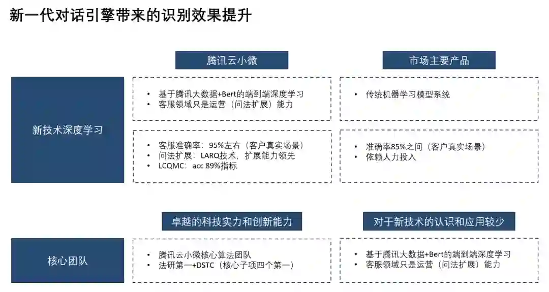 基于此,腾讯云小微在多轮人机对话和 IRC 聊天室对话任务中分别达到了 97.7% 和 95.7% 的高准确率,体现了其技术在行业中的领先水平。