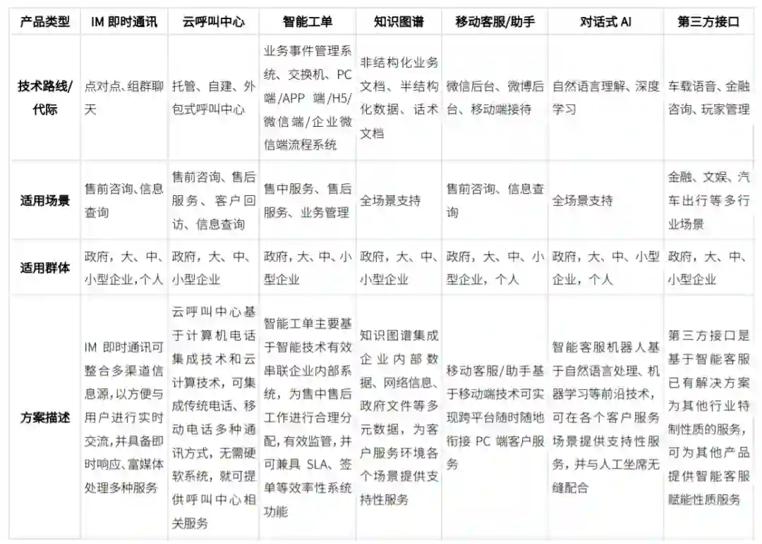 无论是哪个种类的智能客服厂商,都需要面对客户的个性化与多元化需求。纵观市面上成熟的解决方案,报告整理了