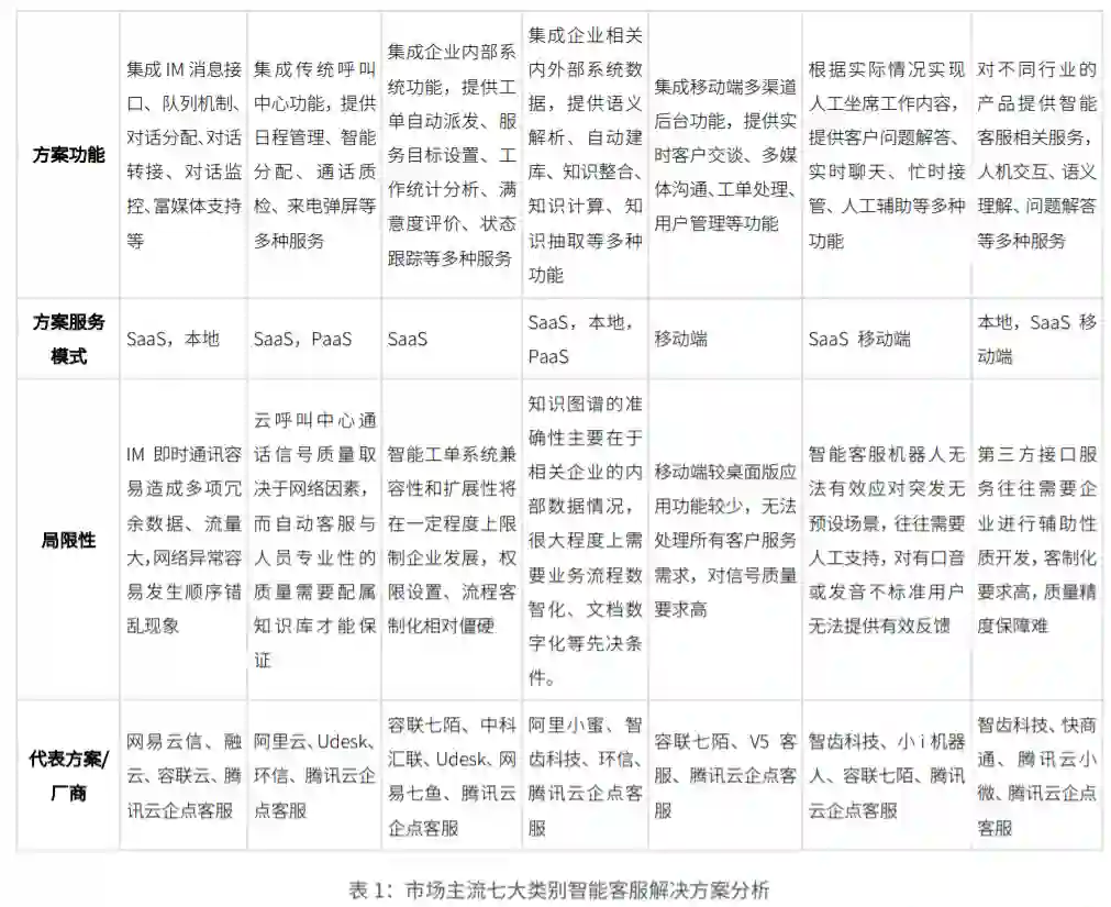 当然,除了腾讯云小微之外,中国智能客服市场还涌现了很多其他类型的解决方案,我们在报告中对这些解决方案进行了分析。