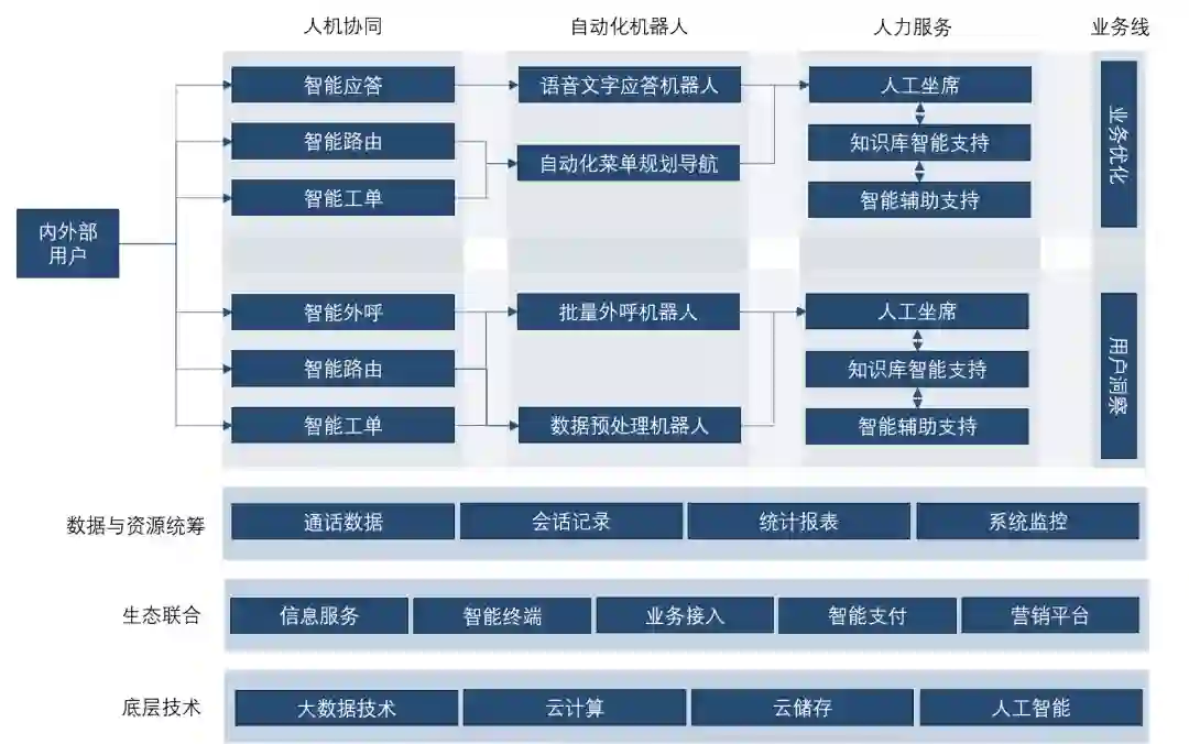 人机协同、机器人问答、人力服务以及数据