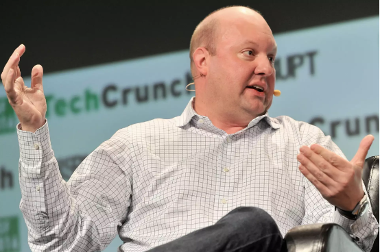 风险投资人 Marc Andreessen 在 2016 年于旧金山召开的 TechCrunch 大会上发表讲话。