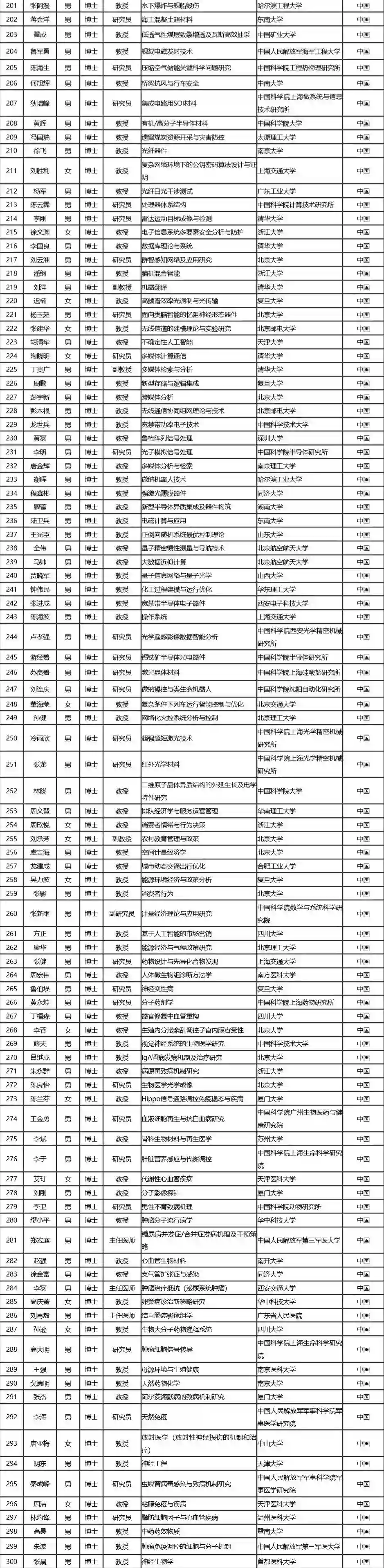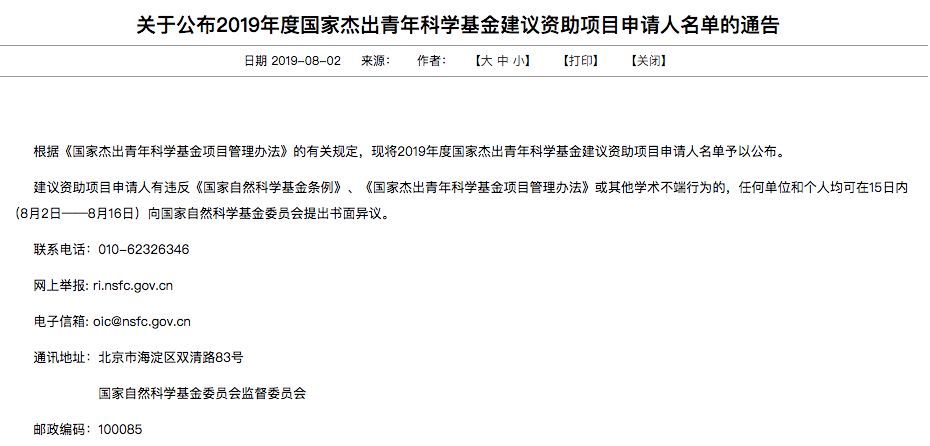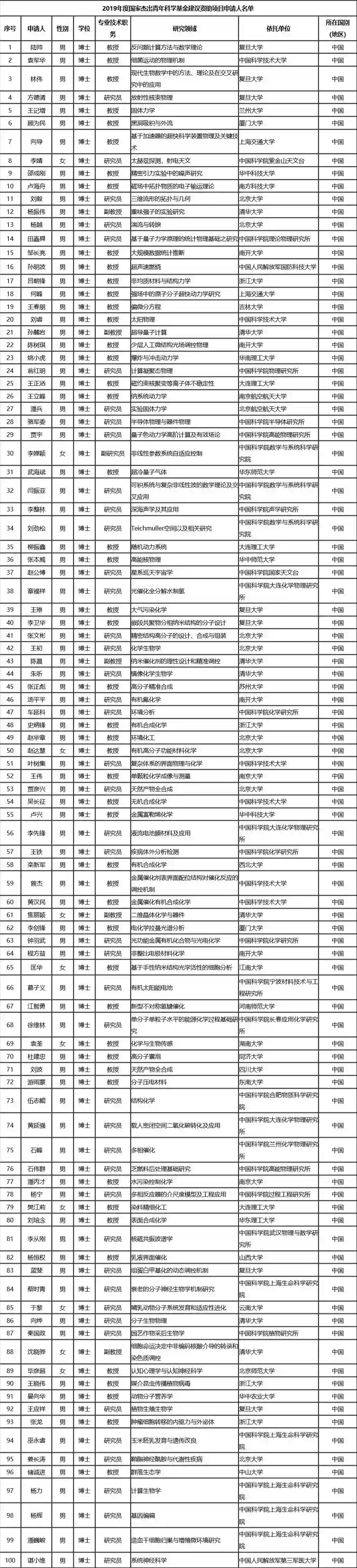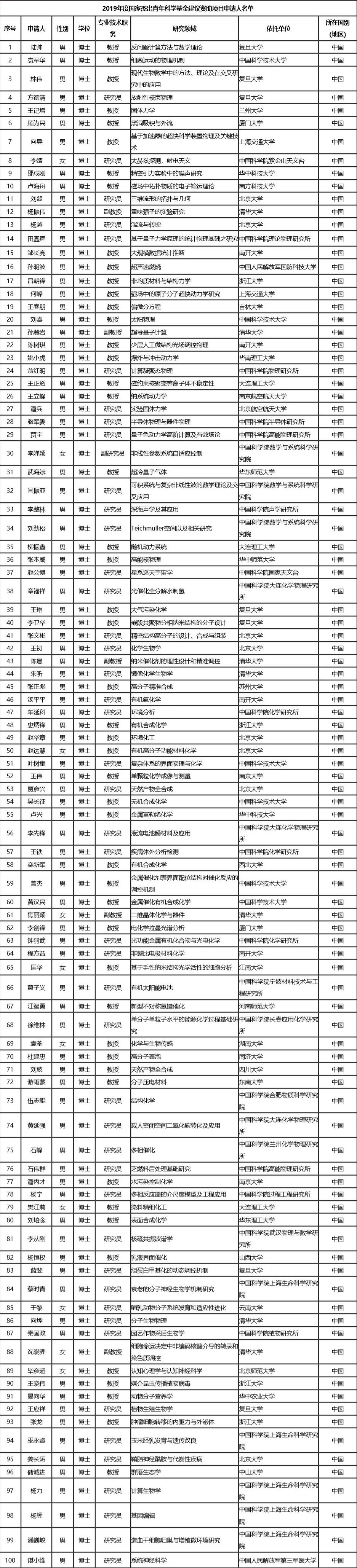 附录:2019年度国家杰出青年科学基金建议资助项目申请人名单