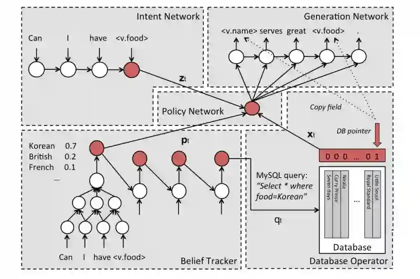 图 3 基于网络的端到端可训练任务导向型对话系统