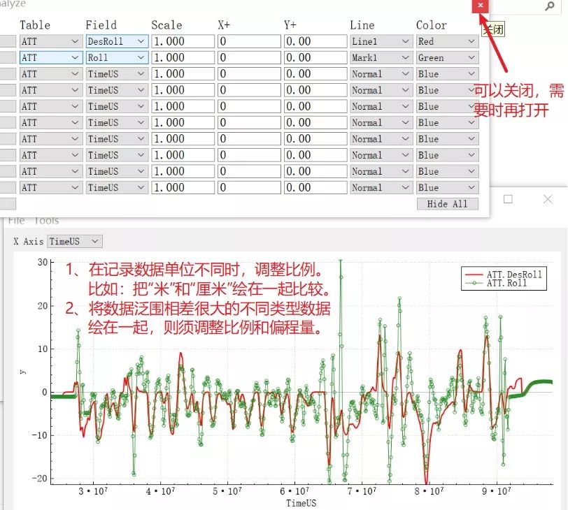 将与当前问题有关的数据锁定后,往往需要多次采集 Log 日志,重复分析以便证实。这时使用脚本绘图比较方便,以免去每次点选、调整比例等麻烦。