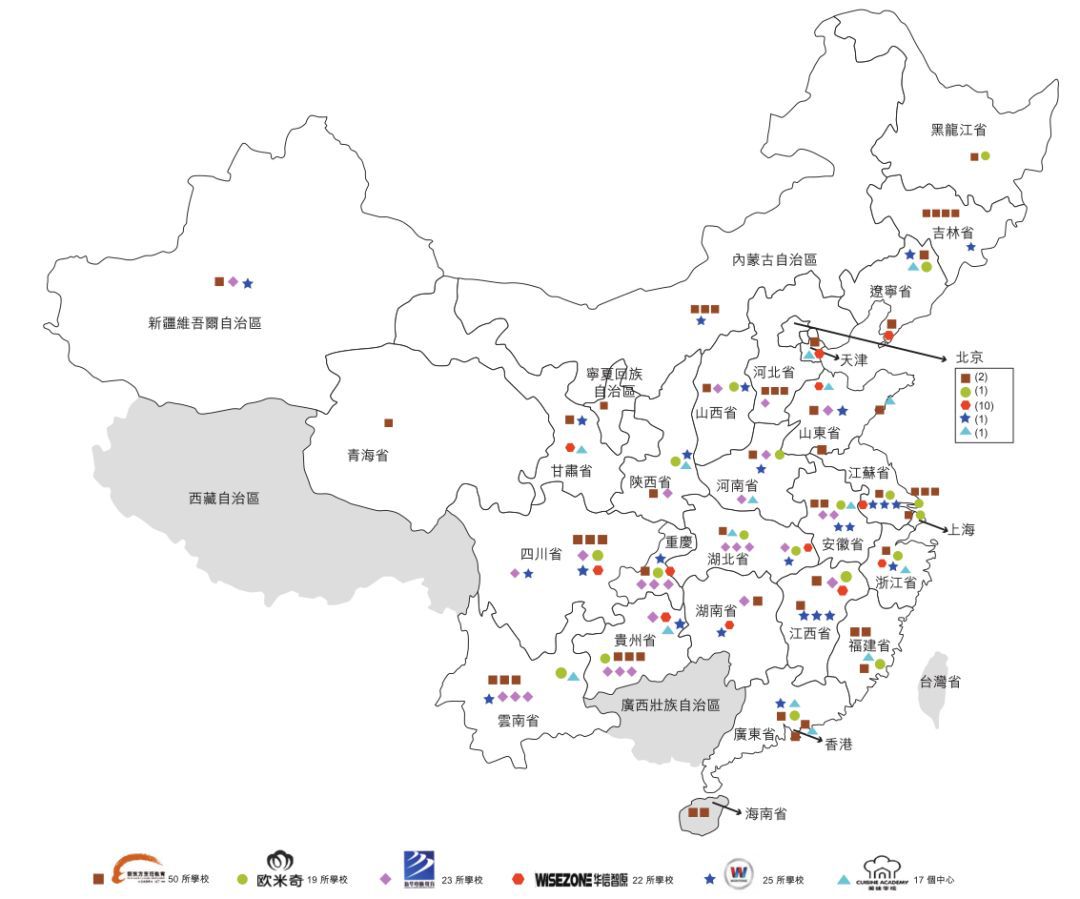 注:东方教育学校分布