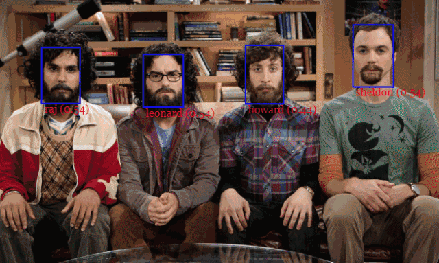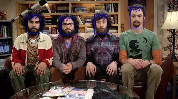 网络返回每张面孔的边界框与相应的分数,即显示面孔的每个边界框的概率。这些分数用于筛选边界区域,因为图像中可能根本不包含任何面孔。注意,即使只有一个人要检索边界框,人脸检测也应该执行。