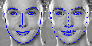 为此 face-api.js 实现了一个简单的 CNN 网络,此网络返回给定人脸图像的 68 个点的面部特征。