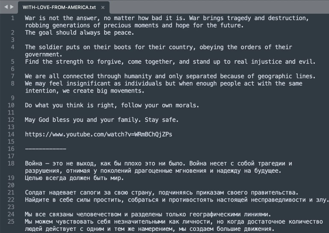 带有多语种和平信息的 WITH-LOVE-FROM-AMERICA.txt 文件