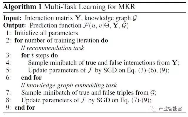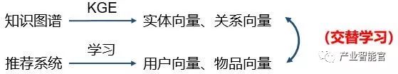 交替学习(alternate learning)。将知识图谱特征学习和推荐算法视为两个分离但又相关的任务,使用多任务学习(multi-task learning)的框架进行交替学习。