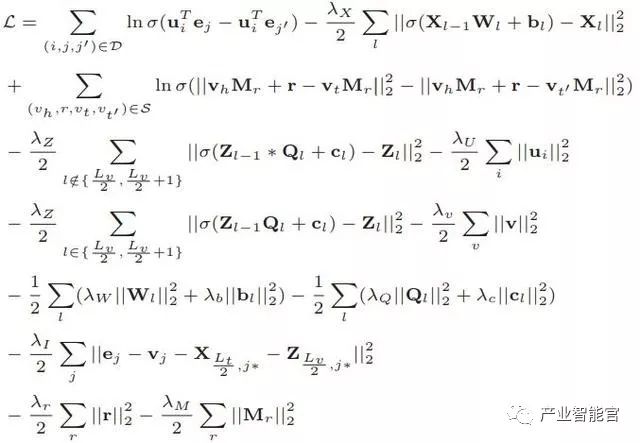 我们将三种知识学习的目标函数与推荐系统中的协同过滤结合,得到如下的联合损失函数: