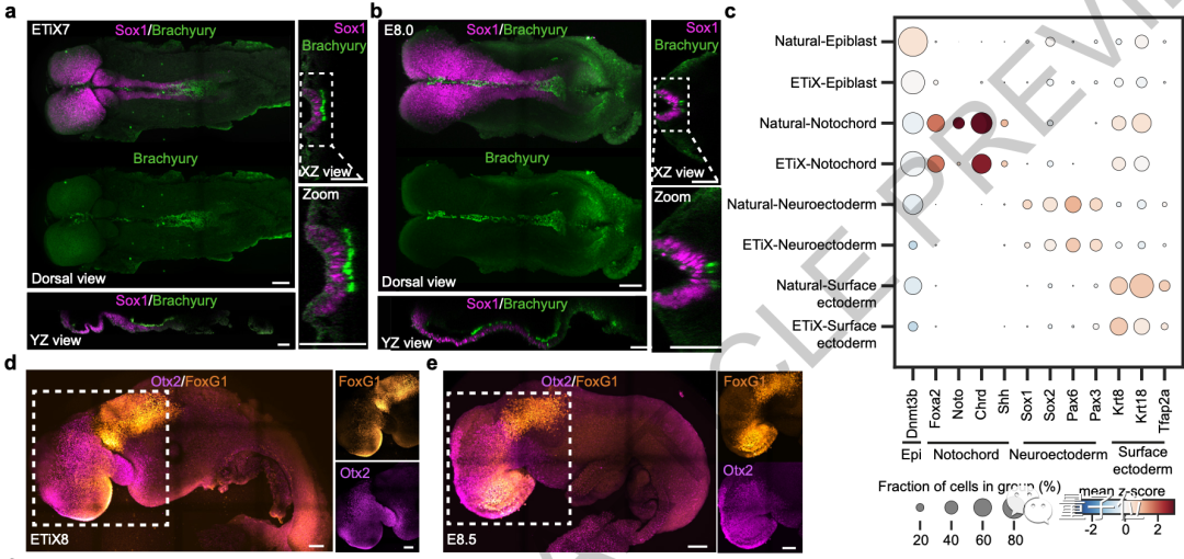 研究人员表示,这次主要进展在于产生整个大脑的能力,尤其是前部区域,这一直是合成胚胎发育的“圣杯”。