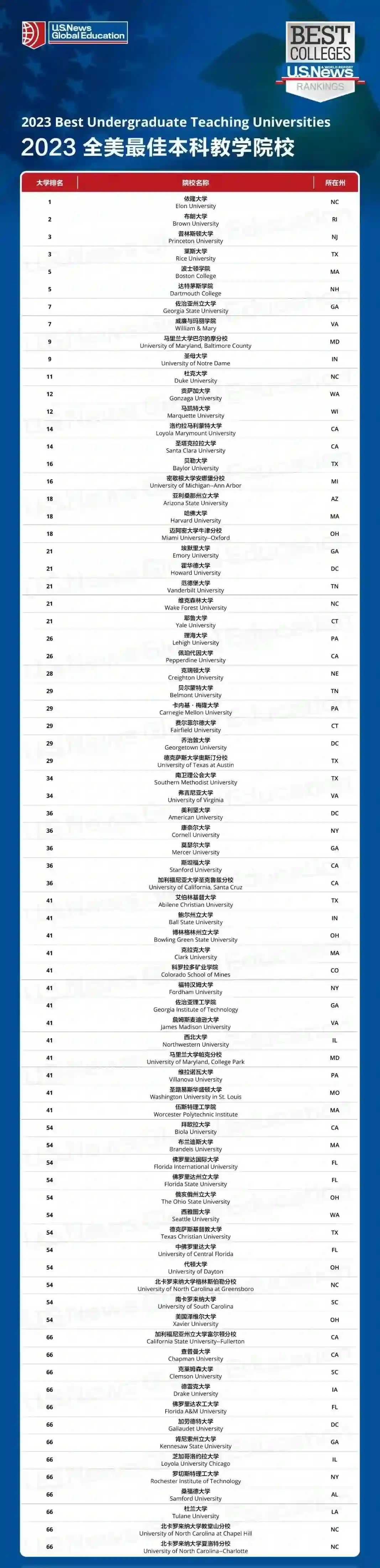 更多结果请参见 US News 官网:https://www.usnews.com/best-colleges