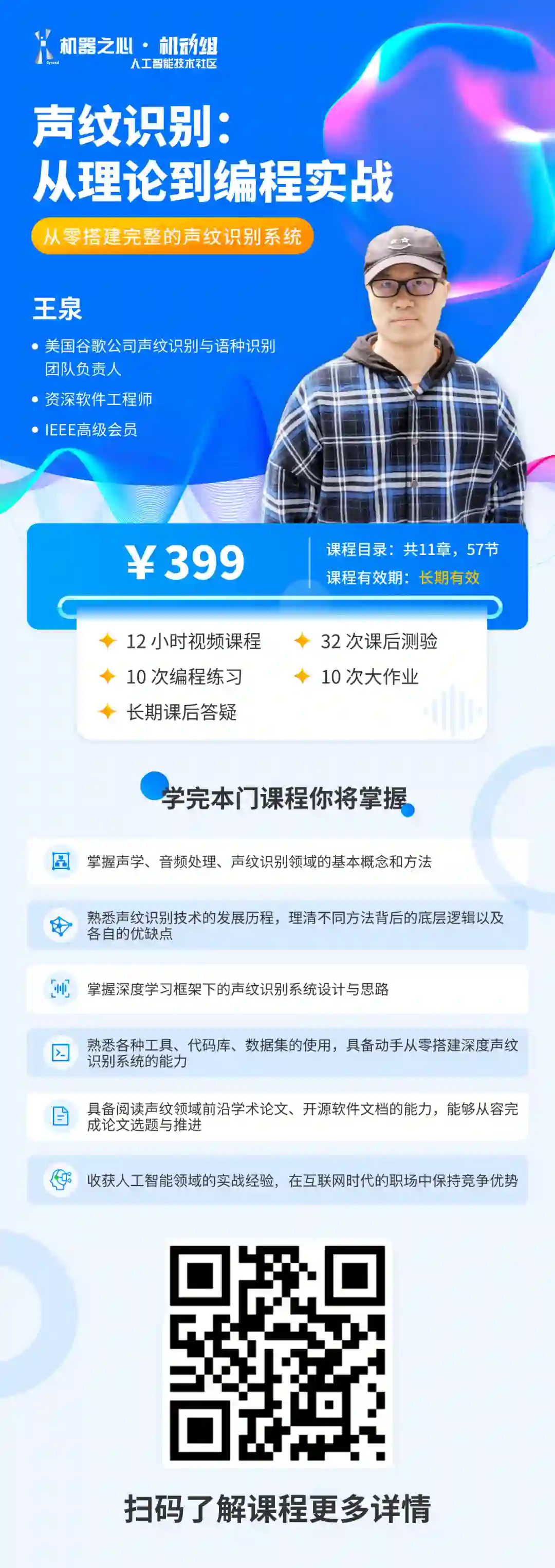 《声纹识别:从理论到编程实战》中文课上线,由谷歌声纹团队负责人王泉博士主讲。
