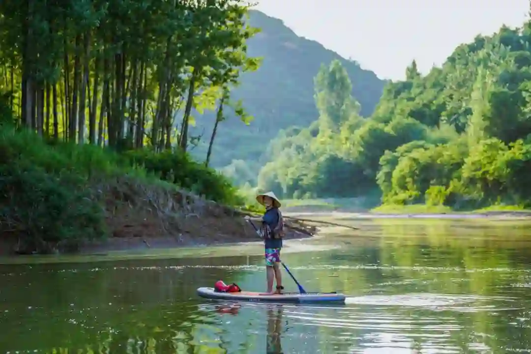 后来,乐璐璐基本上是一边露营一边玩桨板。有时把桨板当船用,把露营装备全部放在板上,划着桨板找适合上岸的露营地;有时把桨板当床用,把桨板固定在岸边的树上,撑开吊床蚊帐,躺在树荫下睡午觉,在虫鸣鸟叫声中睡到自然醒。