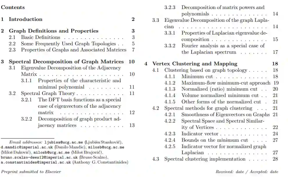 本专题第一部分的重点是图的基本性质、图的拓扑和图的谱表示。第二部分从这些概念着手,以解决围绕图上的数据/信号处理的算法和实际问题,也就是说,重点是对图上的确定性和随机数据的分析和估计。