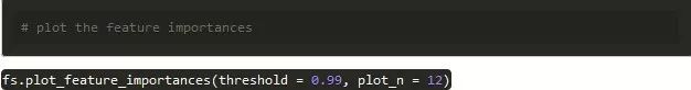 FeatureSelector通过LightGBM库的梯度提升机来查找特征重要性。为了减少差异,对特征重要性进行平均超过10次的GBM训练。此外,通过使用验证集(可关闭)进行早期停止来训练模型,以防止对训练数据的过度拟合。