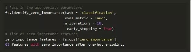 下面的代码调用了该方法并提取了零重要性特征: