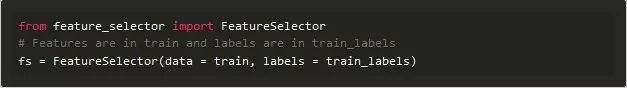 创建FeatureSelector类的实例需传入结构化的数据集,该数据集行为观察值、列为特征。该类内有一些只需传入特征的方法,但是这些基于特征重要性的方法需传入训练标签。所以当用这些方法解决一个有监督分类问题时,需传入一组特征和一组标签。