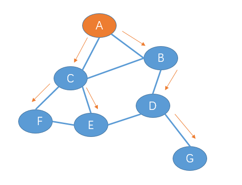 如果节点 A 要做一个广播,那么 A 就会给其邻居节点 B、C 发一份广播分组,B、C 也会给其的邻居节点发送一个广播分组。意味着 B 会给 C、D 发送广播分组,而 C 也会给 B、E、F 发送一份广播分组: