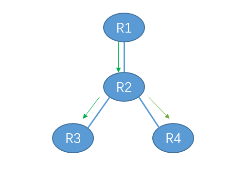 所以这个时候 R3 会给 R4 发送广播分组文,而 R4 接收到 R3 的广播分组之后,R4 会给 R2 发送广播分组,R2 收到 R4 的广播分组之后 ,也会给 R3 再次发送广播分组…..