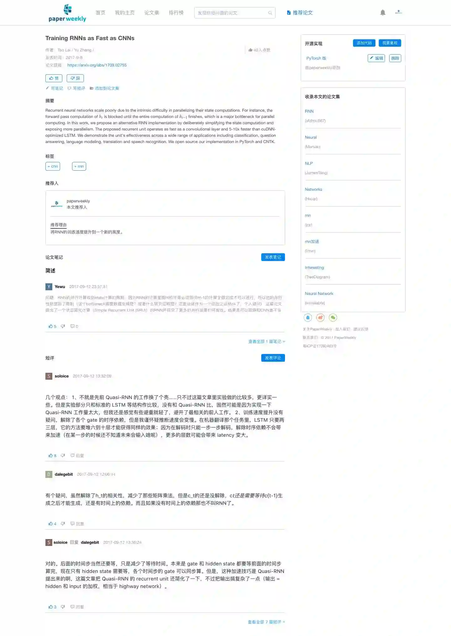 2015 年的时候,我做了一款叫做 rsarXiv 的 app,目的是帮助大家自动过滤出每天感兴趣的 arXiv paper,这样做有个天然的问题就是无法保证 paper 质量。但是放在社区里,这个问题便迎刃而解,于是我们做了今日 arXiv 这个功能。