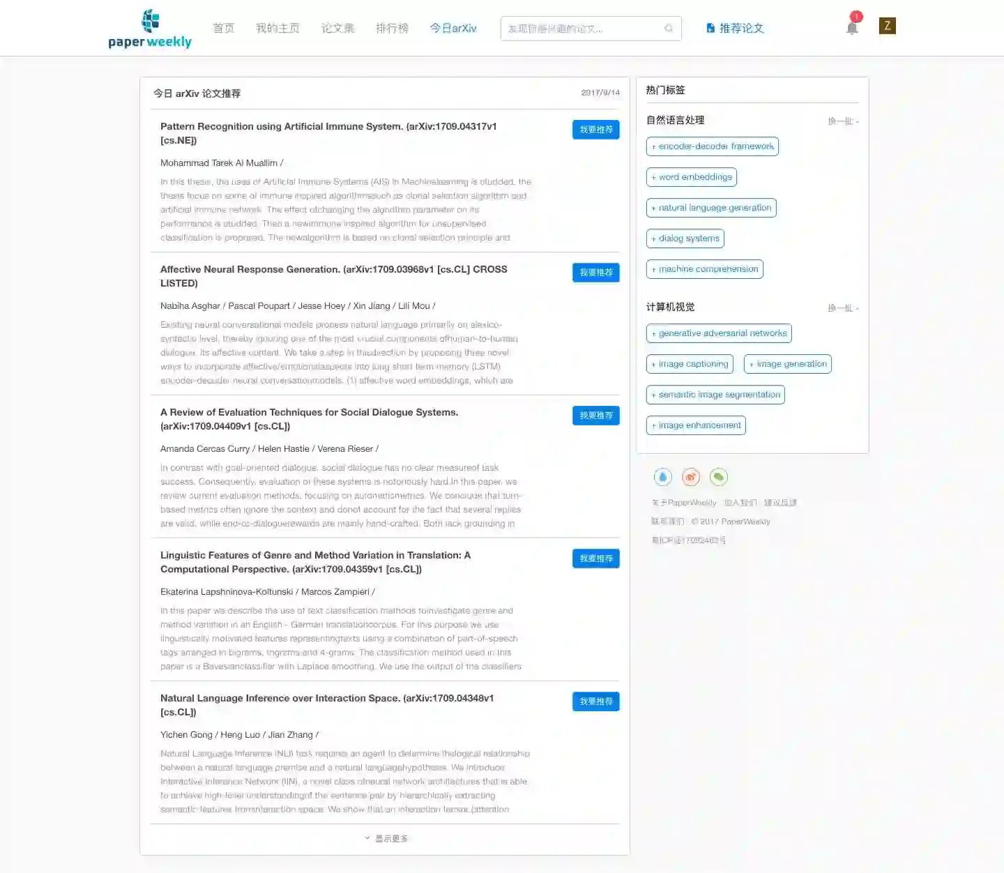 我们会根据用户关注的标签来帮助用户过滤出今天 arXiv 中可能会感兴趣的 paper,如果恰好有你觉得不错的 paper,那么请你记得点击我要推荐,将它一键推荐到社区里,让更多的人看到今天有有哪些好 paper 值得看,让更多的人来评价这些 paper 是否真的值得看。