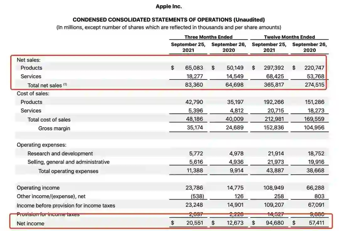 其中,每个销售类别的同比增长都超过了20%,其中iPhone以39%的增长率领先。服务类别的增长主要由高利润的订阅收入组成,其收入增长了27%,比前一年的16%有了明显的提升。