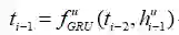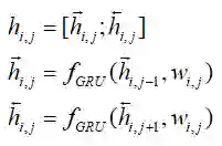 下半部分通过双向GRU得到隐藏状态h以及输出t,并通过一系列计算得到最后的输出: