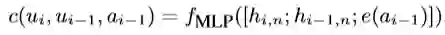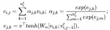 这里W和v都是参数,指的是编码GRU的第j-1个隐藏状态,作者在论文中给出了第j个隐藏状态的计算公式: