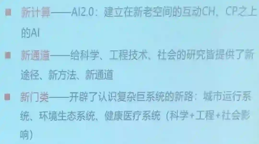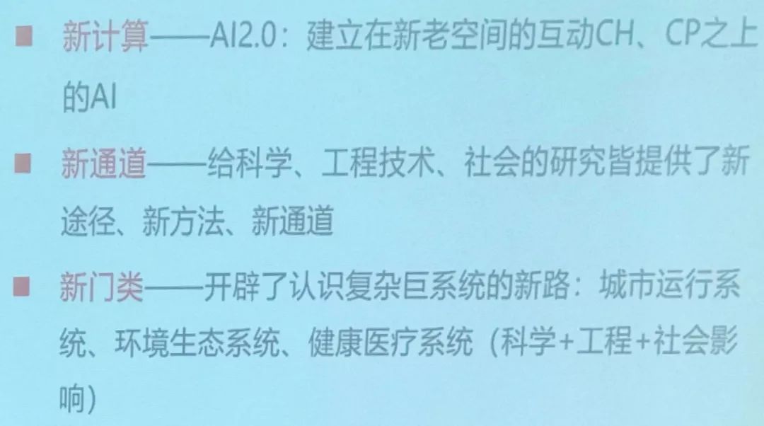 因此空间的变化(PH到CPH的变化)不仅影响人工智能这门学科,这个新的信息流变化也将影响认知的新变化,影响所有的科学、工程和社会科学,为所有的社会科学和工程科学提供新的研究方法、新的研究图景和新的研究通道。