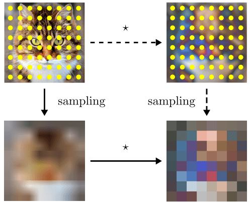 如上图所示,在CNN中,像素平移和特征映射的应用顺序是可以互换的。