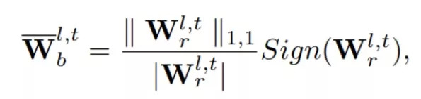 根据用实数值参数的绝对值平均值计算的标量乘以实数值参数的符号作为网络计算导数的二值化参数。这种方法大大缩小了二值化参数与网络内部存储的用于更新的实值参数之间的差距,达到 23% 的网络精度值相对提升。