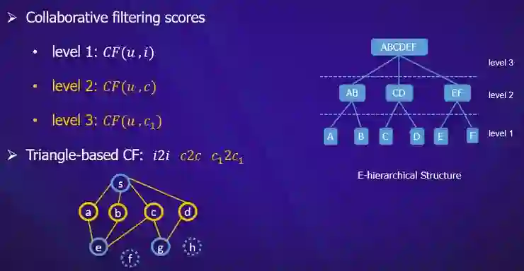 基于用户兴趣主题的层次偏好:沙滩裤,太阳眼镜->防晒霜(沙滩旅行)->运动鞋(户外旅行)。这里的沙滩旅行和户外旅行都是用户兴趣层面的表达。