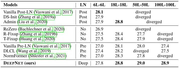 结果显示,本文的方法能够将 Post-LN 性能的优势和 Pre-LN 训练稳定的优势结合起来,且对于目前多个大型 Transformer 模型也是适用的。