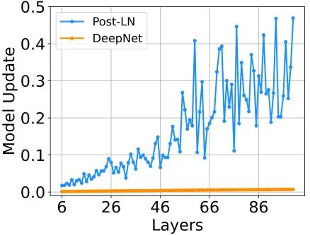 本文作者的目标是提升 Transformer 模型的训练稳定性,并将模型深度进行数量级的扩展。