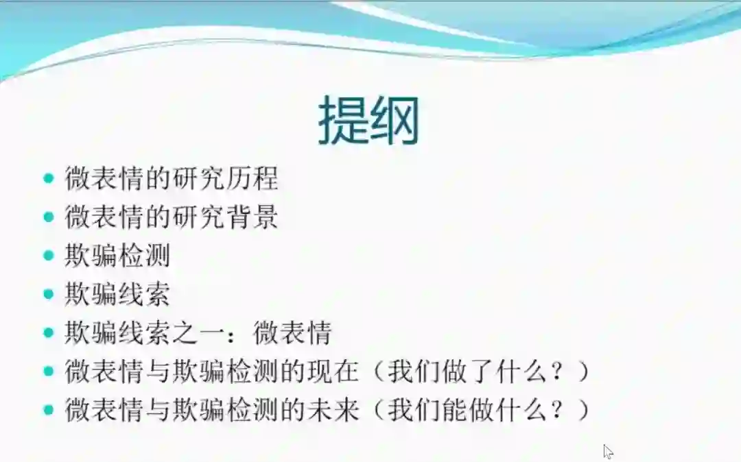 申寻兵博士从微表情的研究历程和背景、欺骗检测和欺骗线索、欺骗线索之一:微表情、以及微表情与欺骗检测的现在和未来这几个方面,为我们进行分享。
