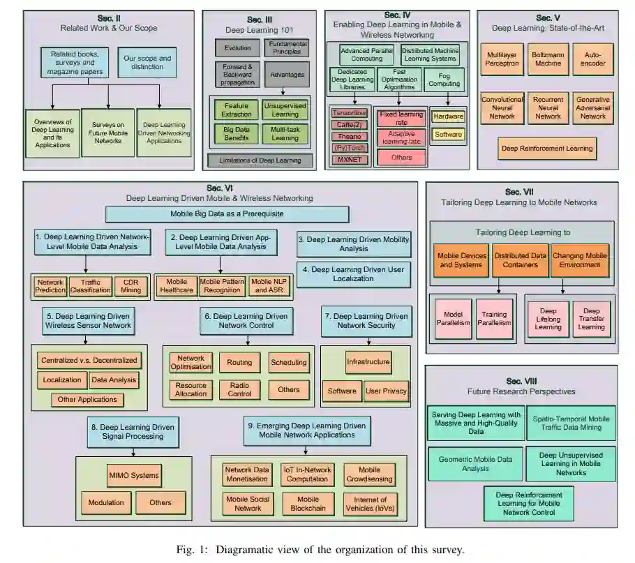 (ii) 我们从移动网络的角度讨论前沿的深度学习技术(如[78],[79]),重点关注它们在该领域的适用性,而较少关注可能过时的传统深度学习模型。