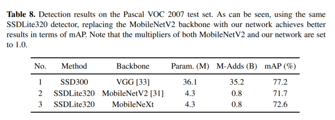 图七:当与量化方法结合的时候,MobileNeXt的优势会更加明显