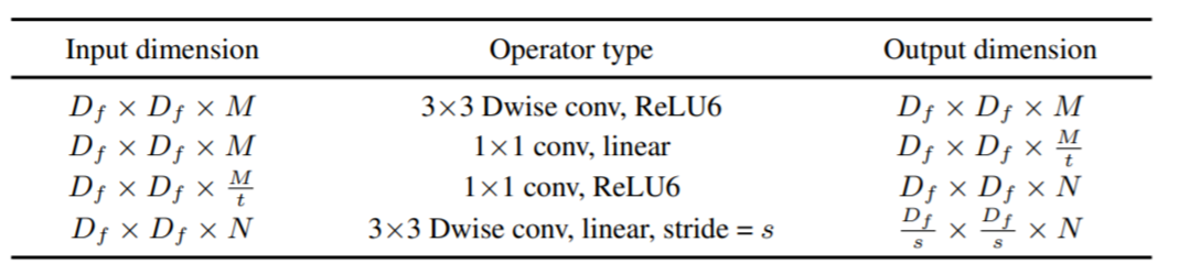 基于上述考虑,得到了该文所设计的新颖的倒残差瓶颈模块,结构如下表所示。
