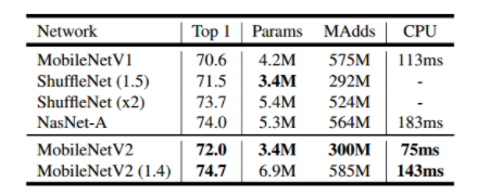 ,使得MobileNetV2降低时延的同时精度也有所提升。