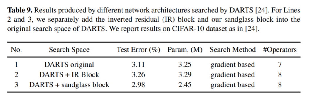 此外,新提出的沙漏模块可用于改良神经网络自动化搜索的搜索空间,在使用相同搜索算法的情况下,加入沙漏模块的搜索空间可以在CIFAR10的数据集上取得更高效的模型架构,大大优于谷歌的MobileNet、何恺明团队提出的ResNet等使用倒残差结构的模型
