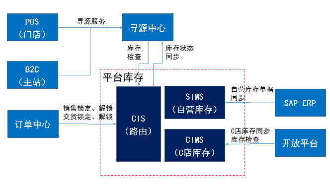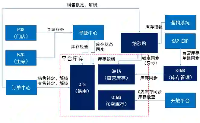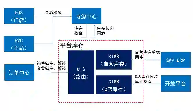 2. 自营库存系统SIMS还是采用的SAP商业软件,仍然受制于厂商,但库存路由系统CIS和C店库存系统CIMS是JAVA自研系统,软件具备维护能力;