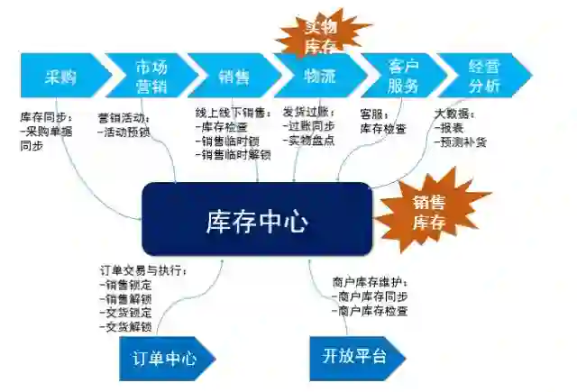 库存作为电商交易的核心系统之一,它贯穿苏宁的整个业务价值链条,不论从采购线的采购、交货、调拨、退场、入库过账、实物盘点等环节,还是销售线的浏览、下单、发货、出库过账等环节,再到客服支撑、经营分析报表、预测补货、多平台销售支撑等大数据应用,都和库存系统紧密关联。