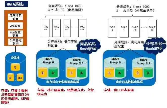 1. 公共库存放主数据及基础配置信息,包含分库分表规则、job配置、ATP检查配置、公共基础数据等,公共库为一主多从,可通过本地缓存、集中式缓存、扩展从库来减轻对主库的压力;