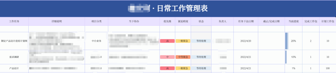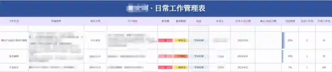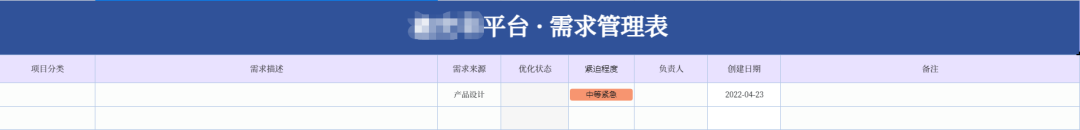 我建议入职两天内,就要建立需求管理表和工作管理表,对产品需求和日常工作进行有效管理。