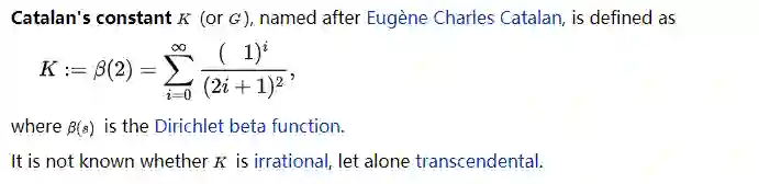 团队人员已经尝试了一系列算法来寻找连分数,并将它们应用到各种概念上重要的数字上。其中一个是加泰罗尼亚常数(Catalan’s constant),这个数字起源于十九世纪比利时数学家欧仁 · 加泰罗尼亚的研究。